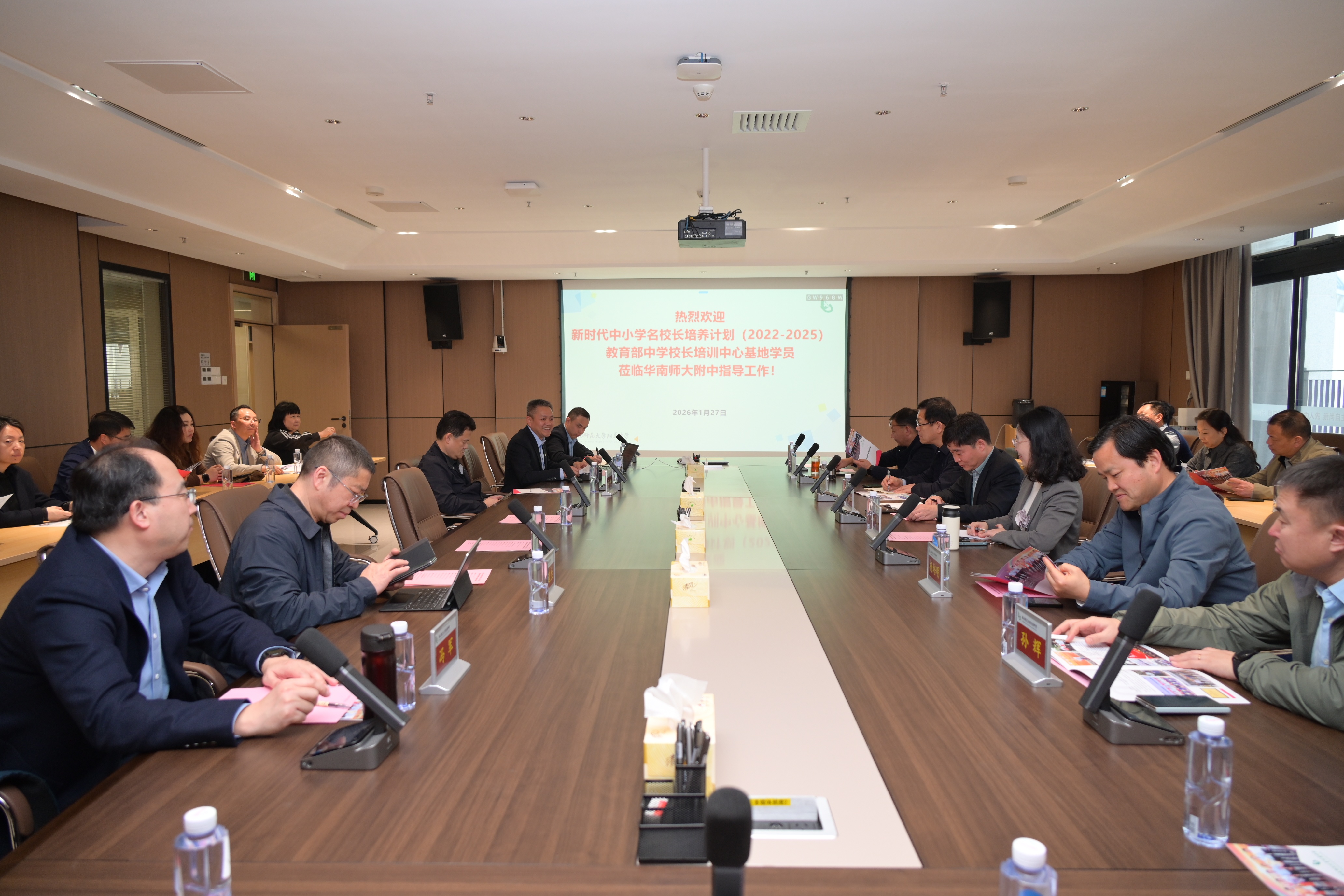 1月27日,教育部新时代中小学名校长培养计划(2022-2025)学员一行50余人,在教育部中学校长培训中心主任助理杨全印博士和主任助理邓睿博士的陪同下,莅临华南师范大学附属中学知识城校区考察交流。学校副校长林春鸿等热情接待了来访客人.