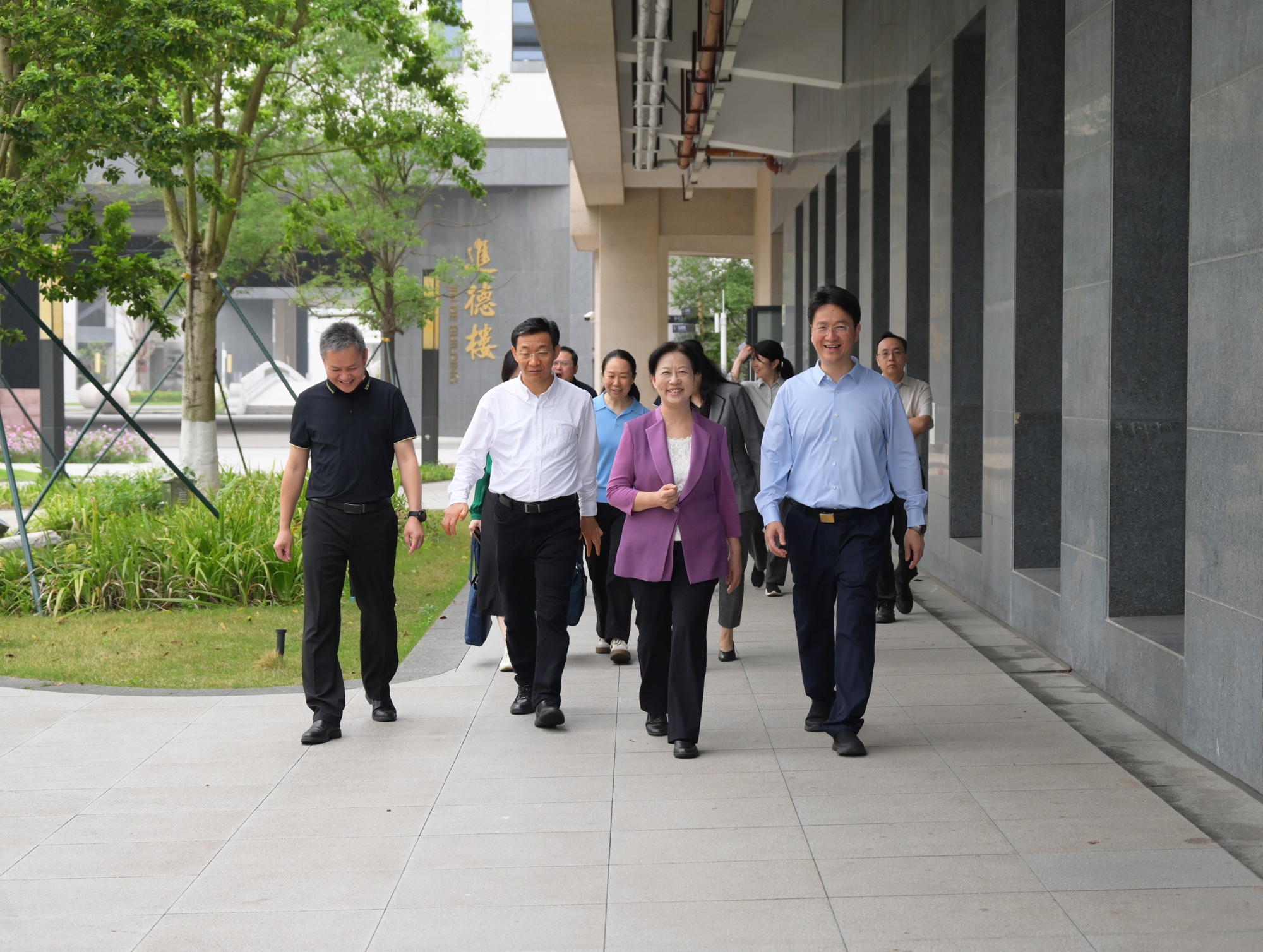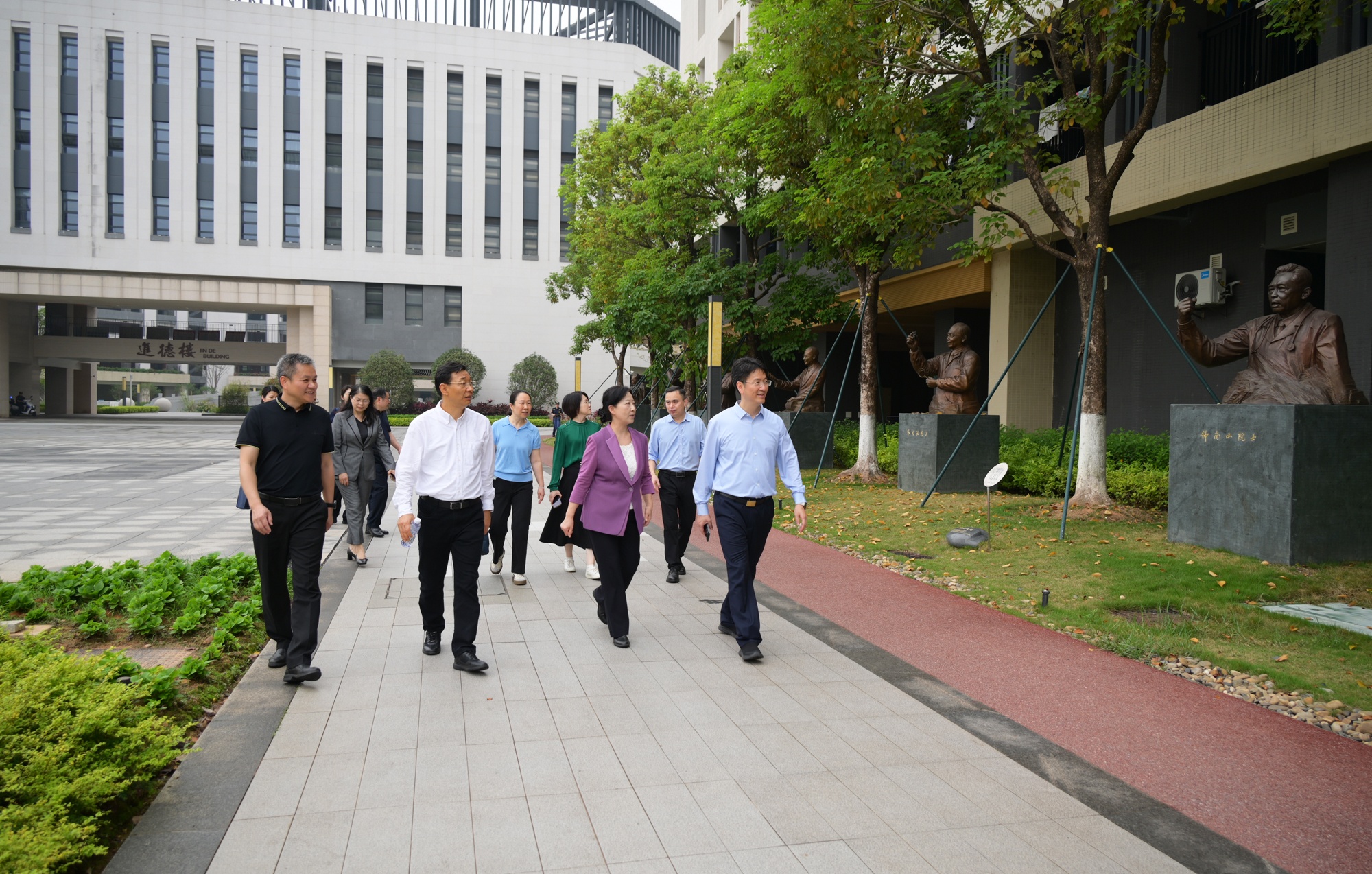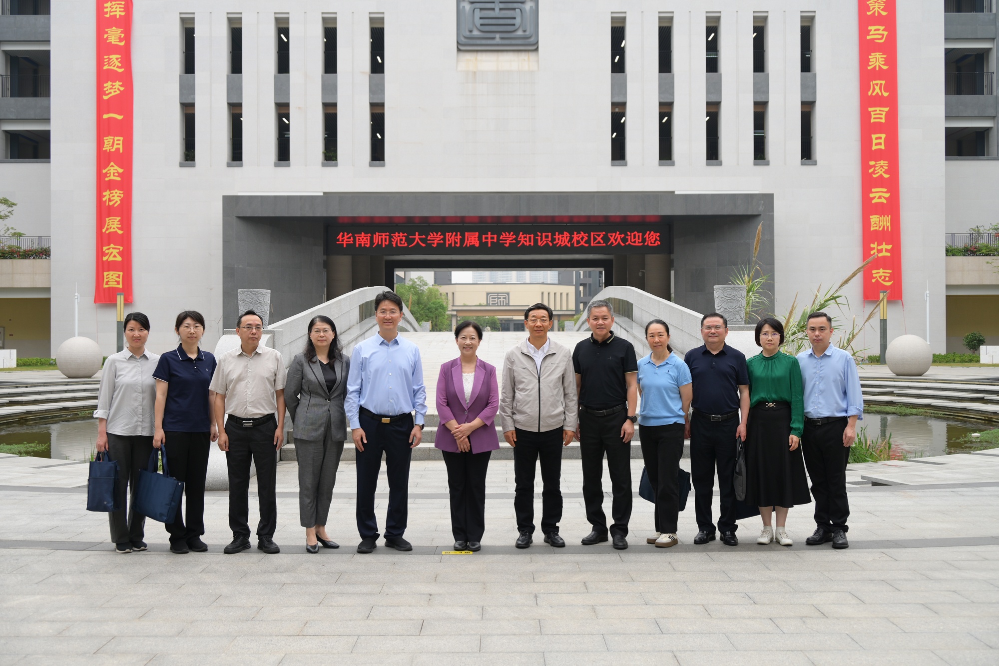4月7日上午,广东省人大常委会副主任谭玲率领人大教育科学文化卫生委员会调研组莅临华南师大附中知识城校区,围绕推进普高扩容工作开展专题调研。省人大教科文卫委主任委员张知干、副主任委员张文青等参加调研。华南师大附中党委书记姚训琪、副校长林春鸿等陪同调研。